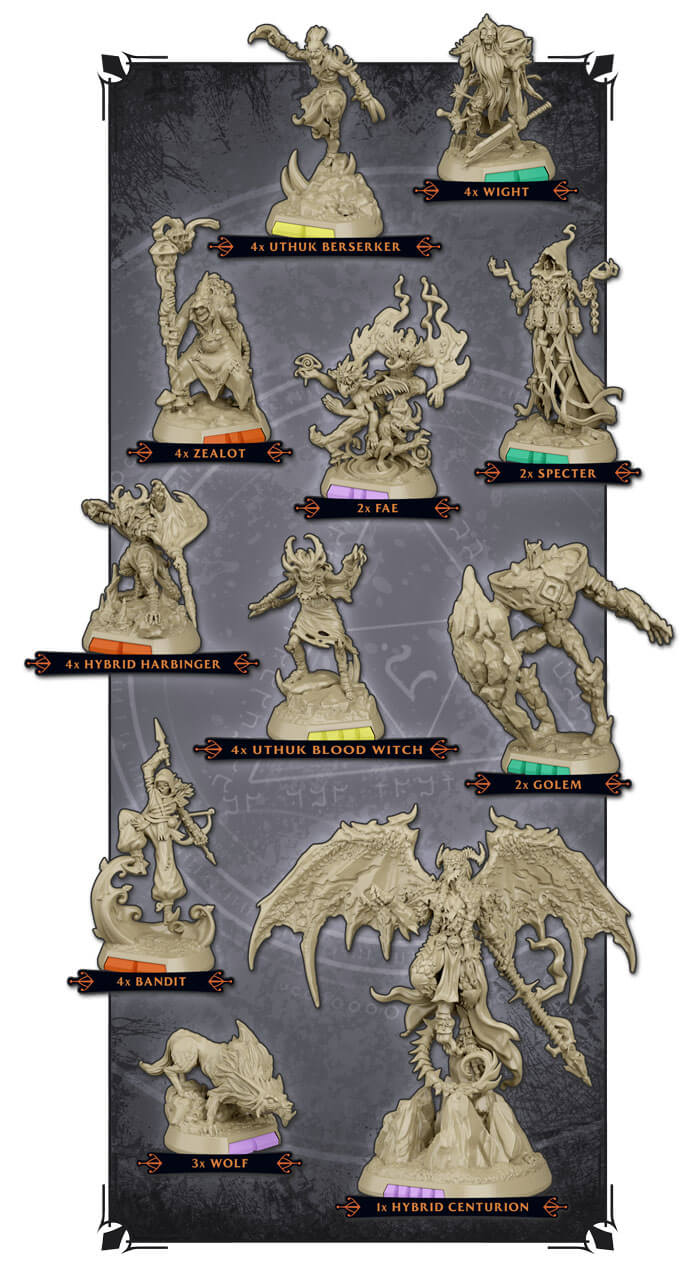 Throughout your campaign, you’ll face undead lurking in the mists, demonic barbarians stalking the wilds, and even more terrifying threats. With 46 pieces of 3D terrain and 40 hero and monster miniatures to draw you into the game, your greatest adventure is yet before you! Your objectives will change from quest to quest as you follow the overarching story of the campaign.