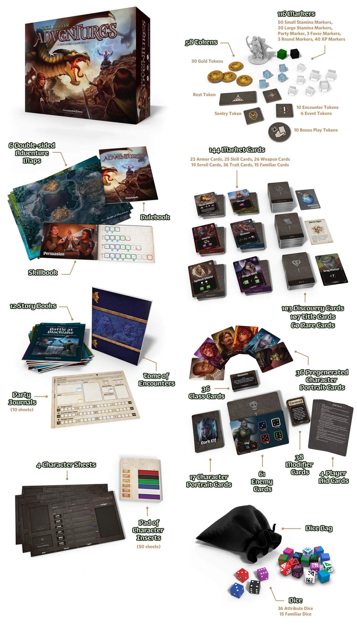 Adventures does not require the Roll Player base game or any of its expansions to play. Pick from one of six pre-generated characters, or import a favorite Roll Player character. If you do import a character you’ve built in Roll Player, any expansions and promo cards/boards that were used previously may still be used!