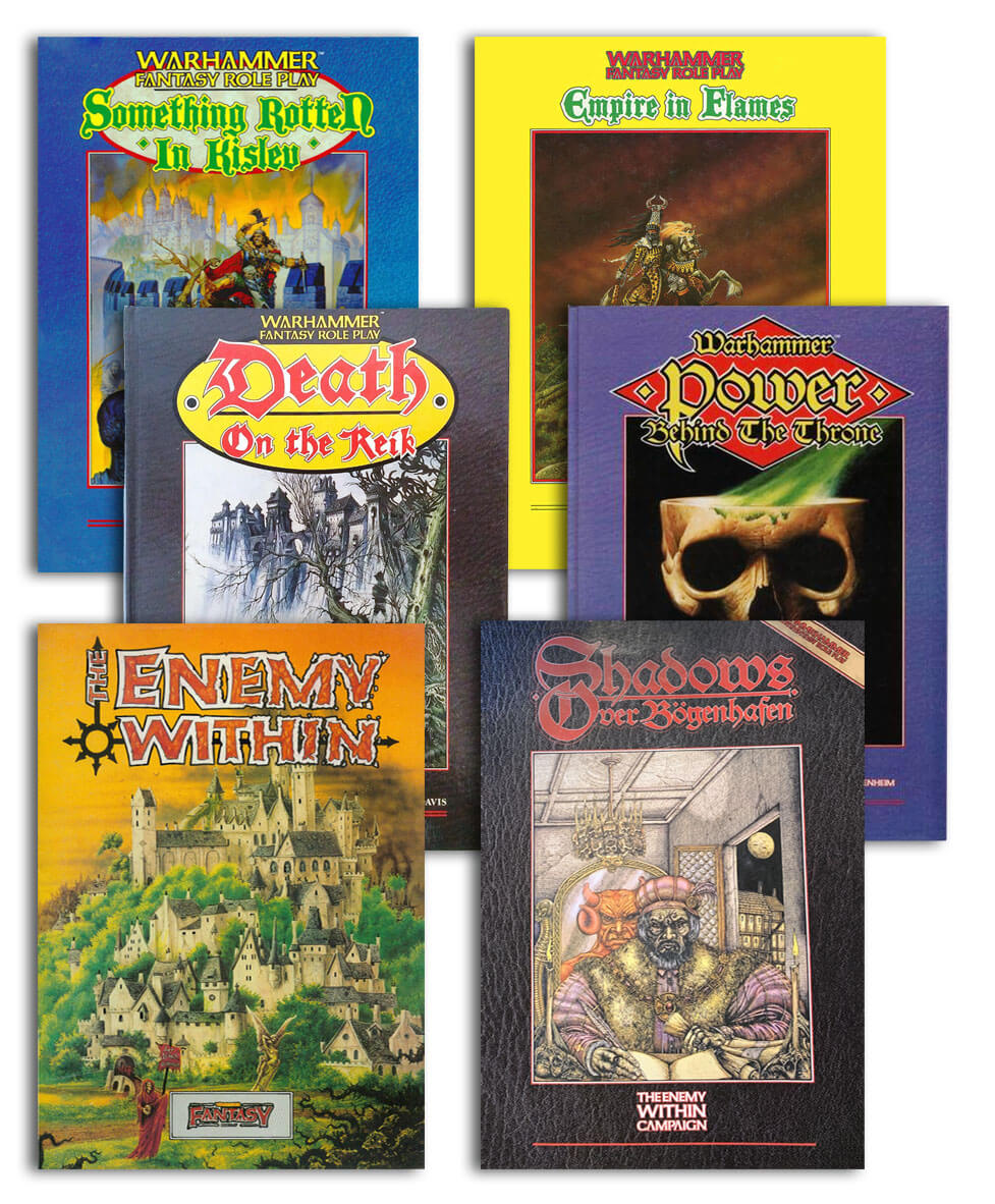 The Enemy Within is the classic campaign for Warhammer Fantasy Roleplay. The first instalment—The Enemy Within—was released in 1986. The final book—Empire in Flames—was released in 1989. The full campaign consisted of six parts:
