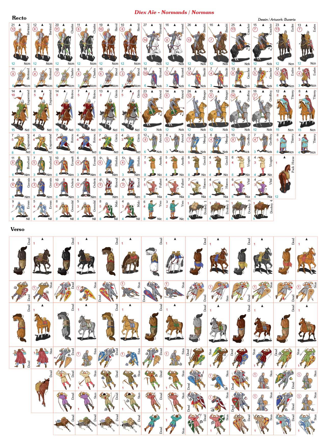 Publisher Cry Havoc Fan‘s Diex Aie 2 places us in England just after the battle of Hastings in the second half of the 11th Century. It depicts the numerous fights that the Saxons fought to resist the “Norman Yoke.” This release is a campaign game: It is used to generate tactical scenarios which are played on the standard maps of the series.