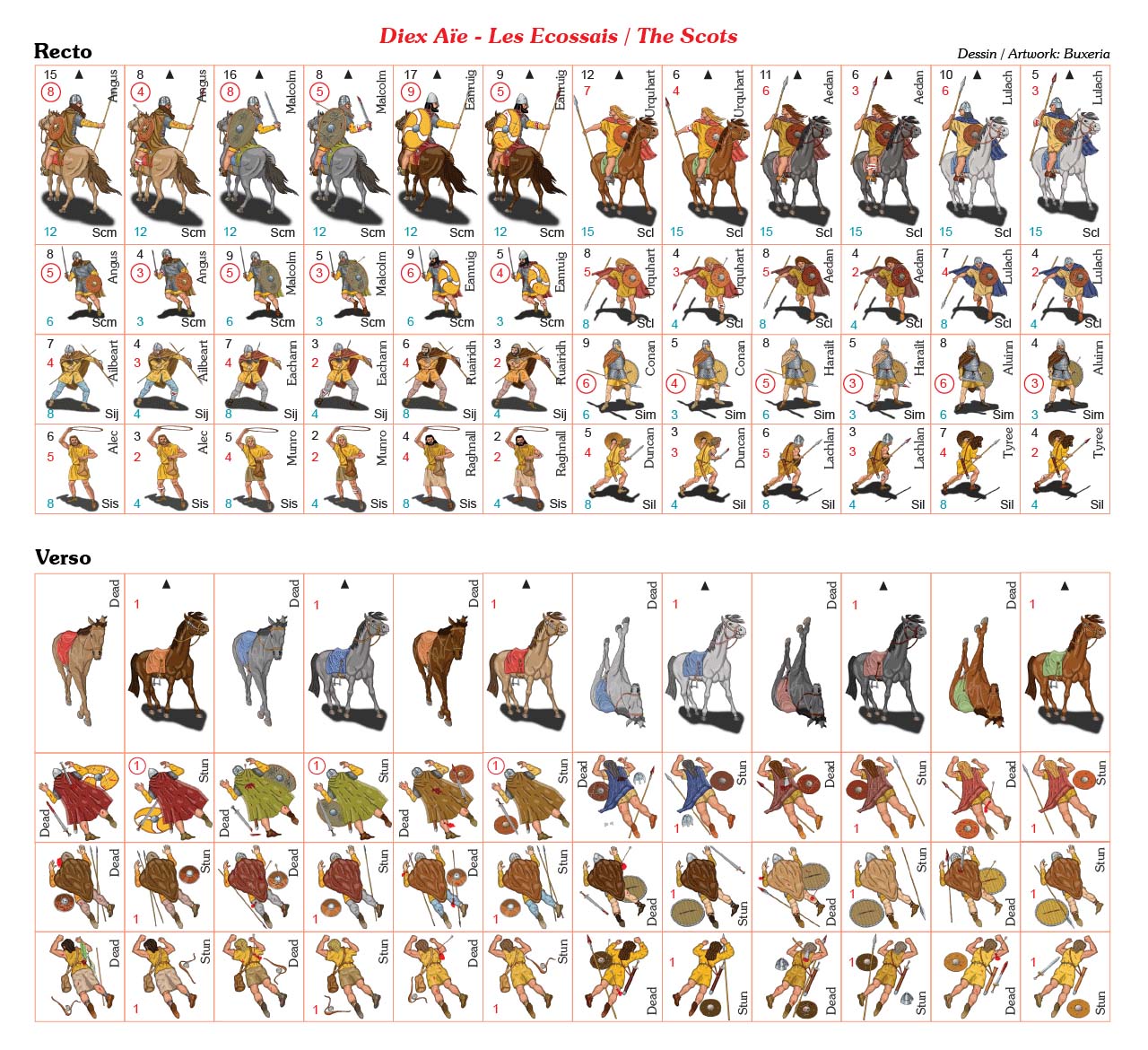 The 4 playable factions are displayed through counters using the Outremer/Croisades format. A 3-letter marking system makes the various playing pieces easy to identify on the maps.