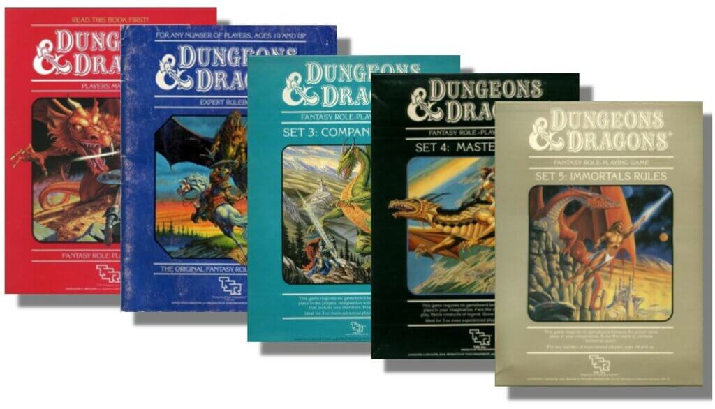 Appearance: Like the basic sets that proceeded it, the BECMI line comes in a series of boxed sets, each a different color: red, blue, teal, black, and gold, respectively. The Rules Cyclopedia is a 300+ page hardcover.