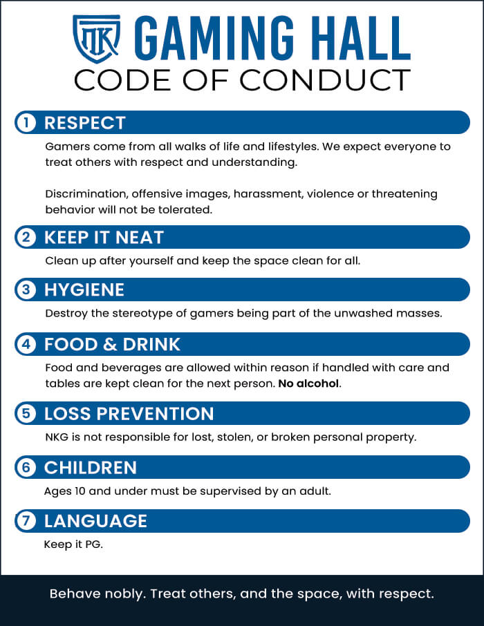 noble knight games gaming hall code conduct rules