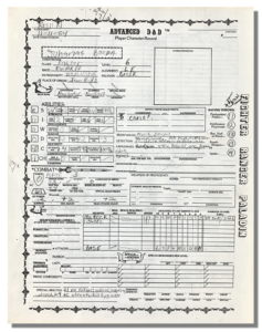 Noble Knight Games buys gaming products every week, and sometimes those products contain something extra. One of my favorites things to find is old character sheets. There’s just something cool about looking at someone’s old, handwritten character. In this series of articles, we analyze one of those found sheets through a thin veneer of nostalgia (with just a touch of tongue-in-cheek sarcasm).