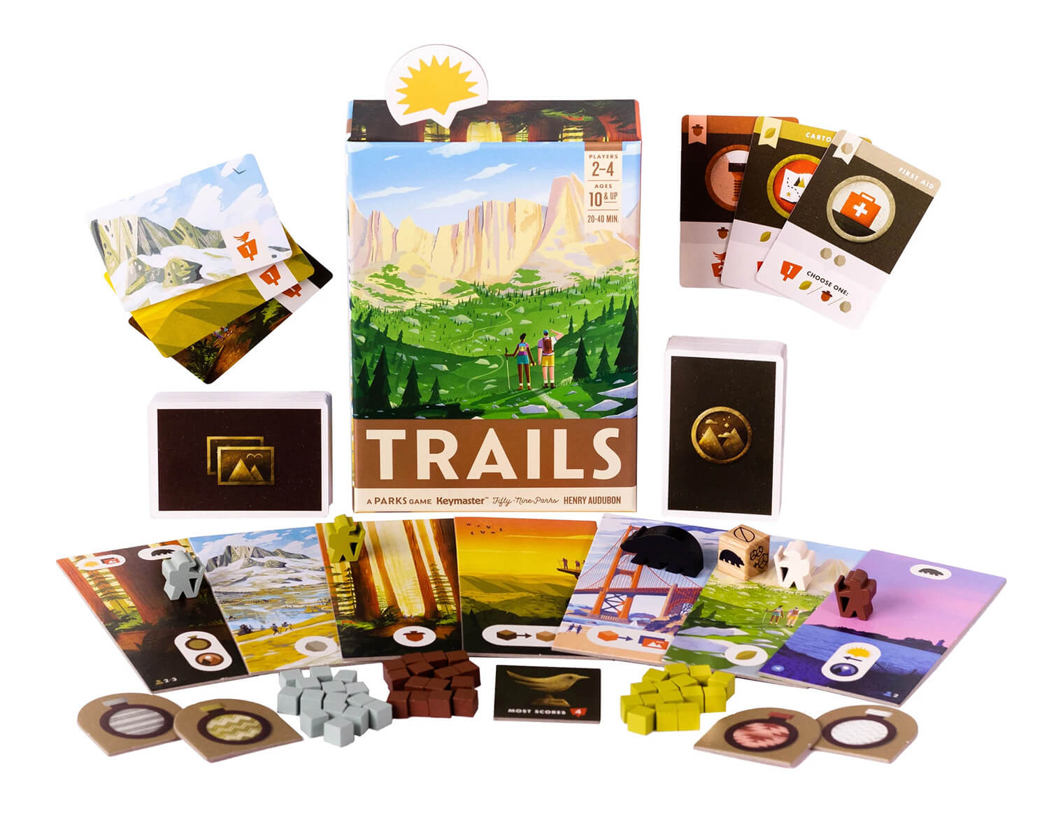 You might think that Keymaster had exhausted the national park theme with the six boxes available in the Parks and Parks: Memories series. But the nations’s natural beauty continues to inspire. Trails is the next game featuring artwork from the Fifty-Nine Parks Print Series.