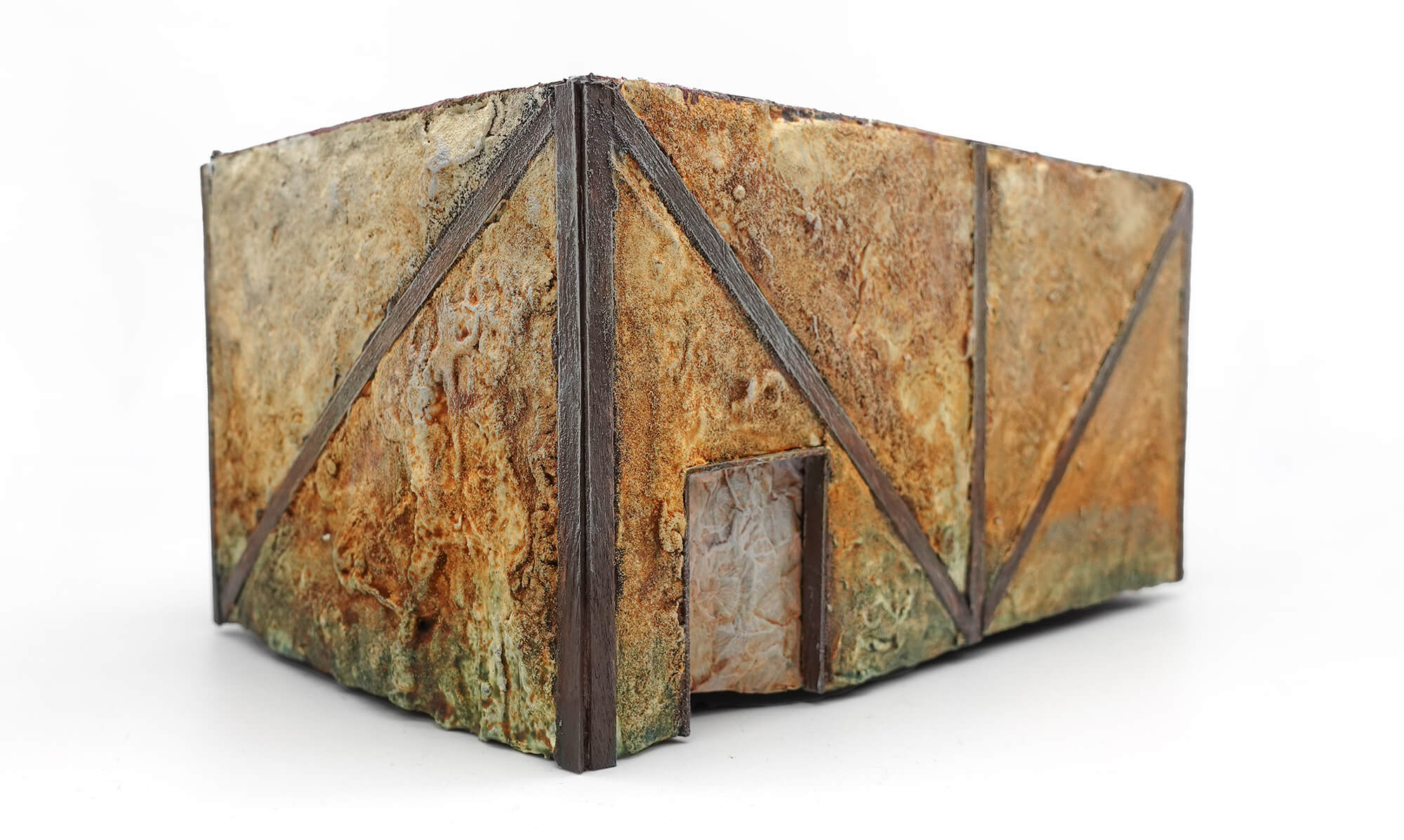 - When the walls are dry again, drybrush the top half of the walls and the roof with Huge Miniatures’ Pale Rose