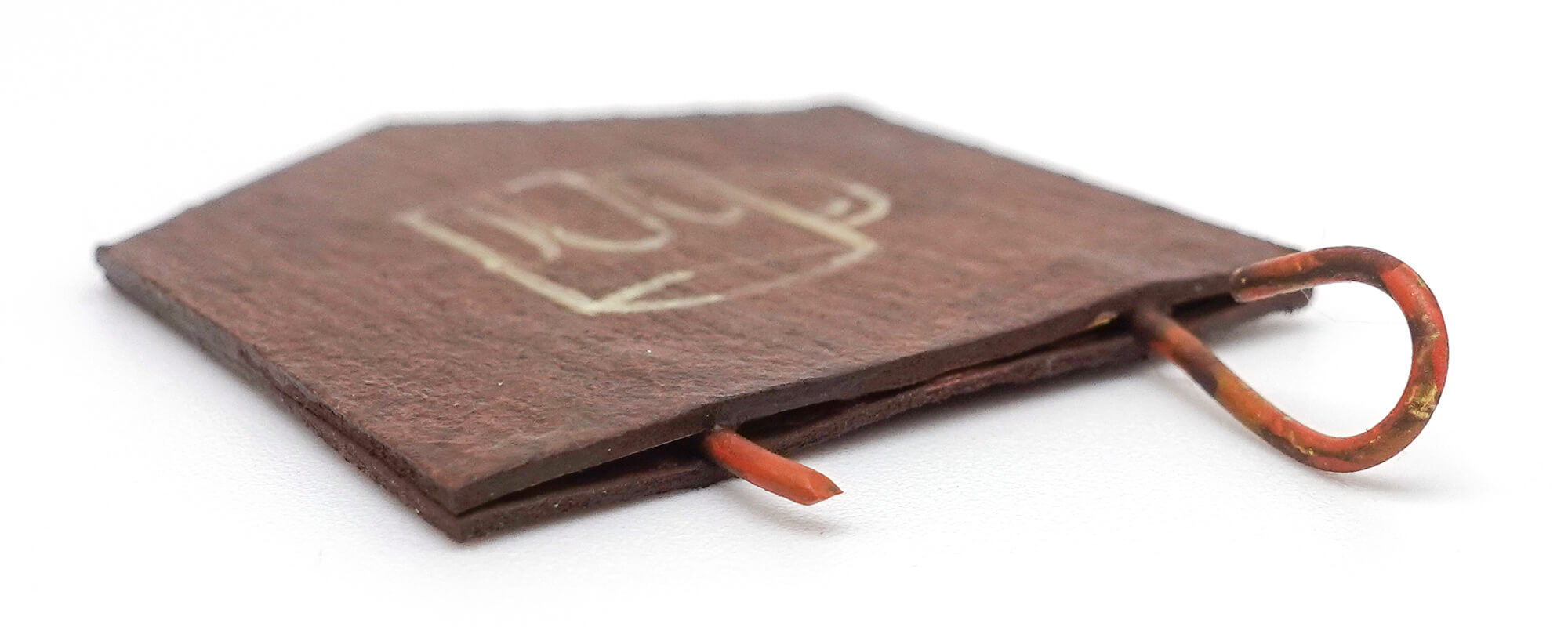 - Insert the matchstick into the signpost hole and—on the inside of the structure—hot glue it in place