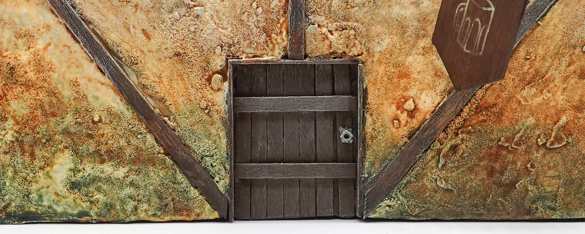 - Glue it to the inside of the tavern with tacky glue so it blocks the front doorway
