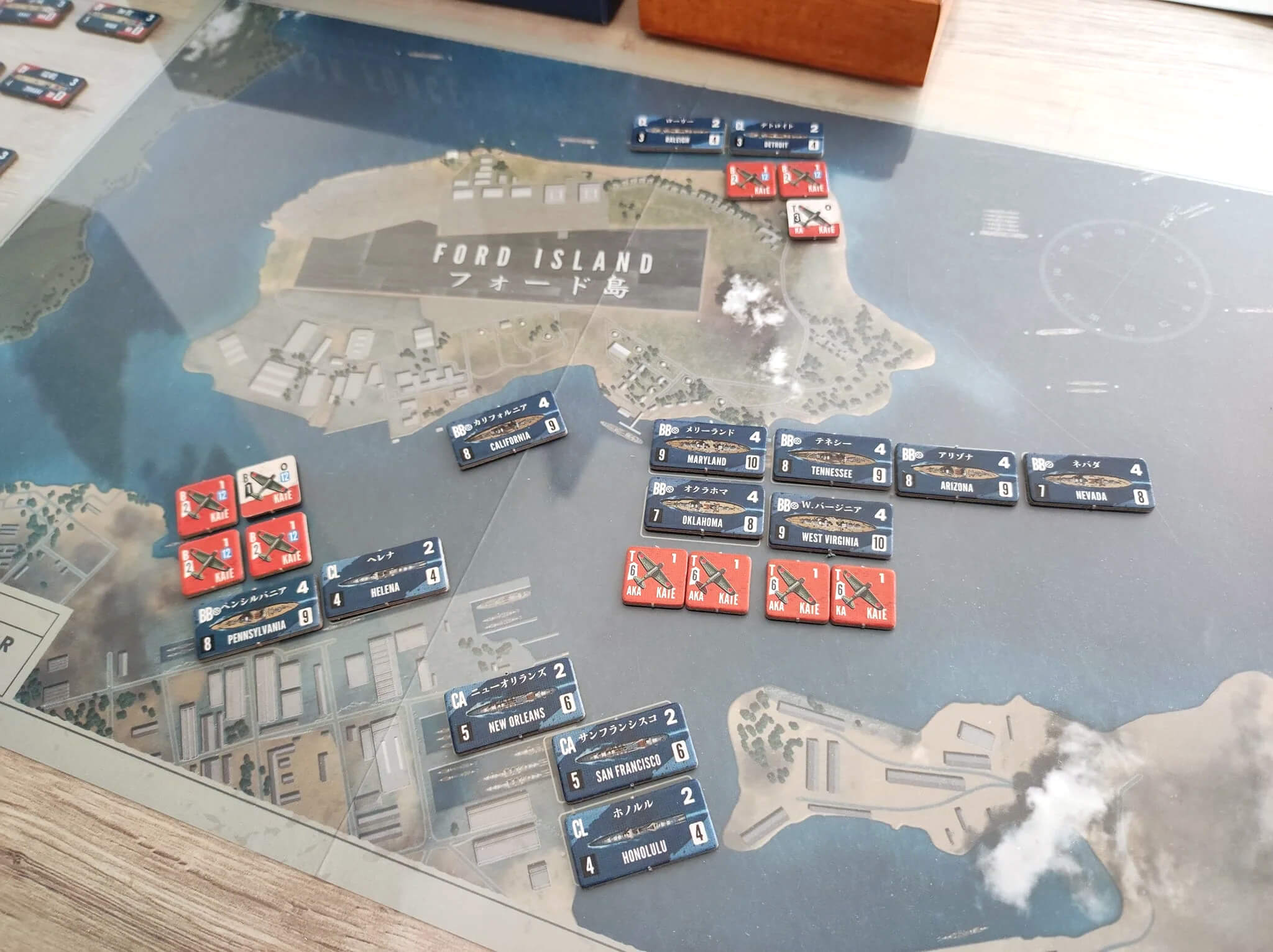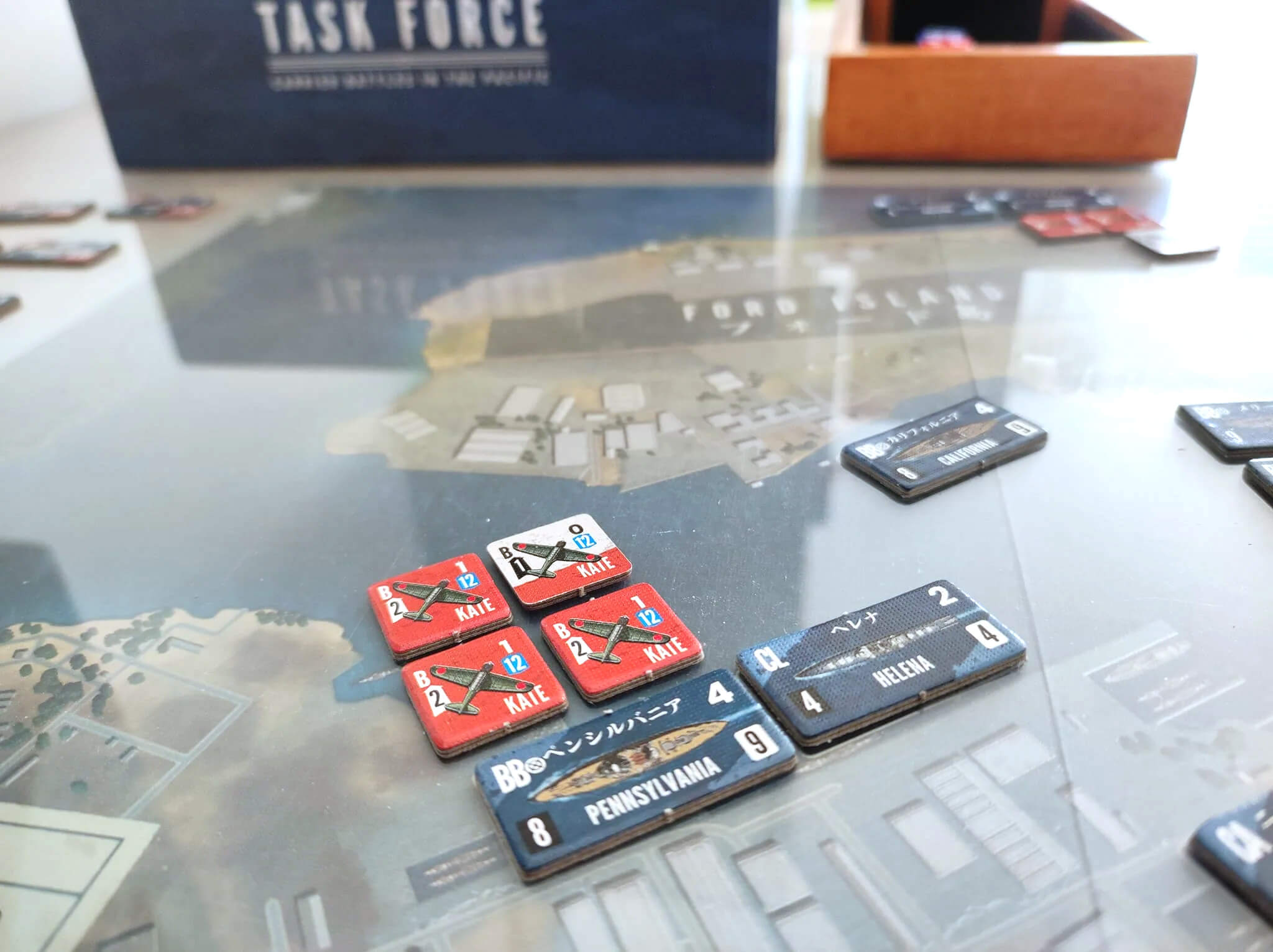 The scenarios progressively increase in difficulty. The first (Attack on Pearl Harbor) is for complete beginners, whereas the final few will be best enjoyed by intermediate players. That said, even the final scenarios will be accessible to a beginner who has progressed through the preceding ones in turn. Conversely, the earlier scenarios may be of little interest to intermediate players due to their low difficulty. The purpose of these first scenarios is simply to teach new players the essential rules appearing throughout all of Task Force.