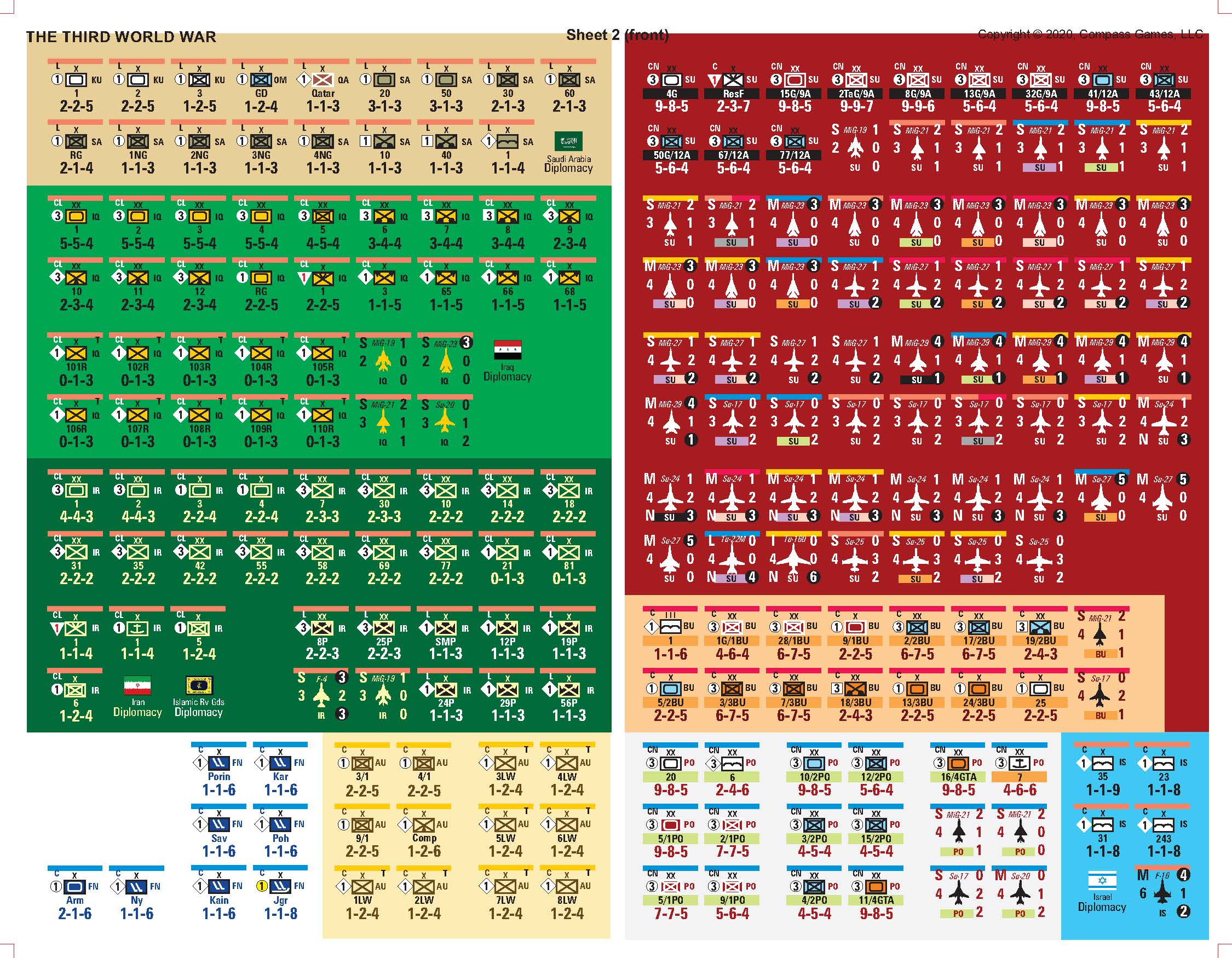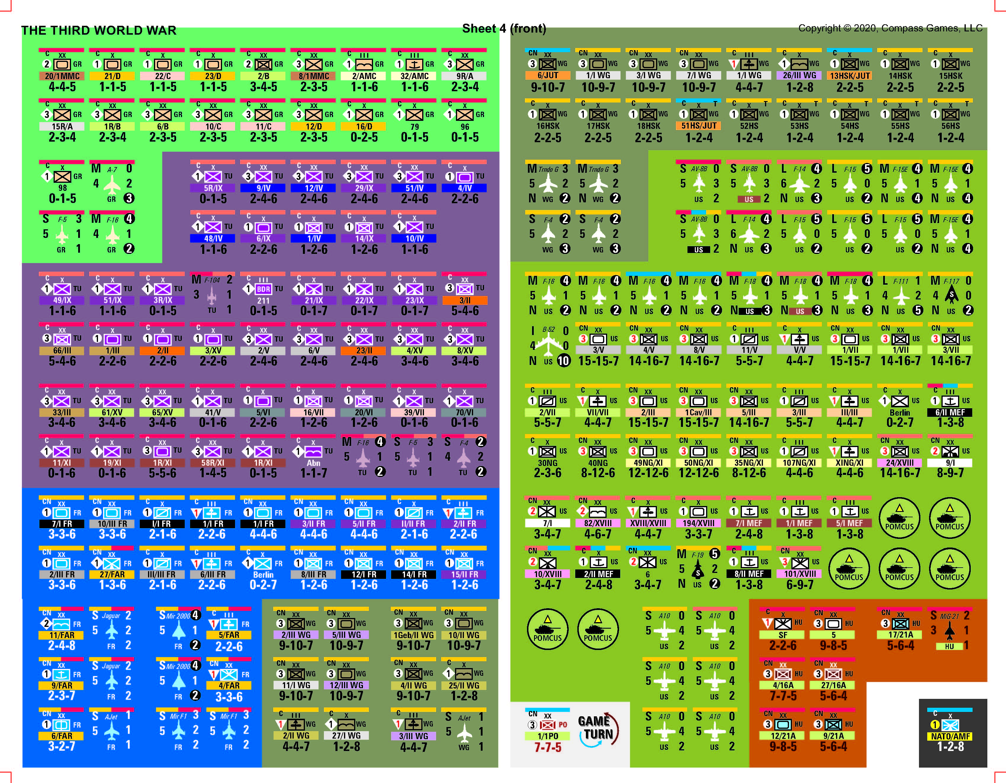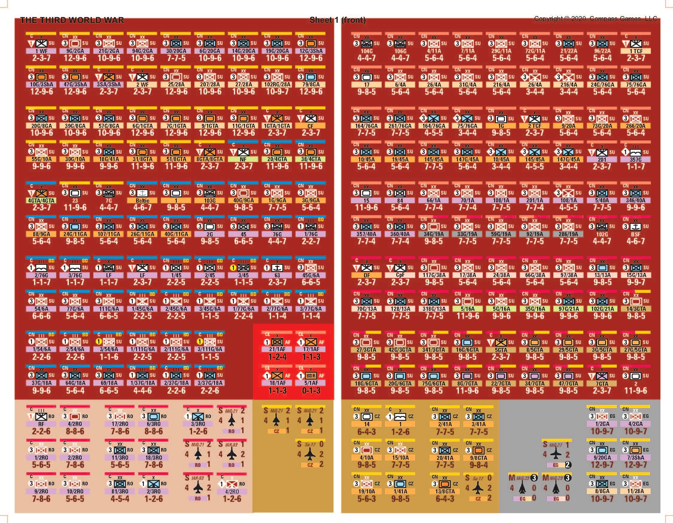 • Color-coding on Warsaw Pact ground unit counters for ease in distinguishing army designation
