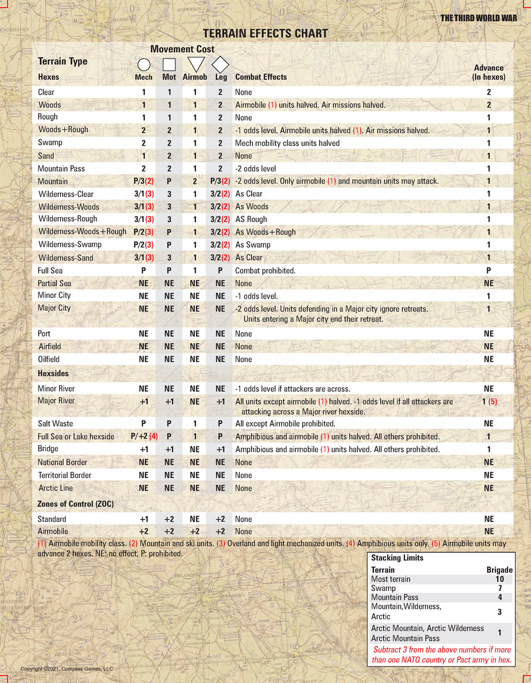 • Combined the seven maps from Third World War, Southern Front, and Arctic Front into four larger maps (22 x 34″), including adding the remainder of Poland and Western Russia; all while keeping the same area of the original games