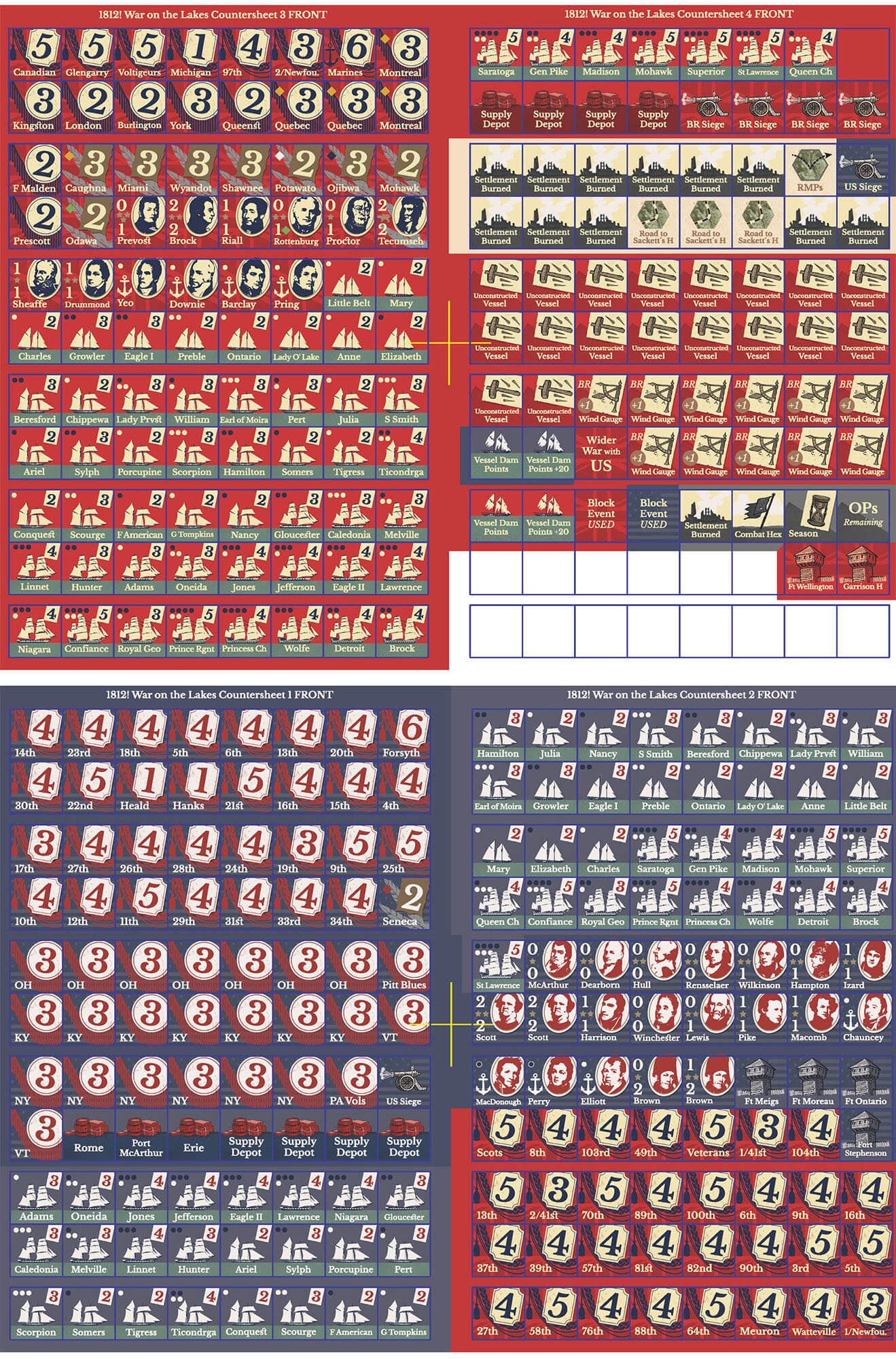 1812! War on the Great Lakes Frontier is a card-driven strategy game that simulates the naval and land actions fought on and around the Great Lakes of North America during The War of 1812. This is a two-player game with either player commanding the naval and land forces of the United States of America or the British Empire.