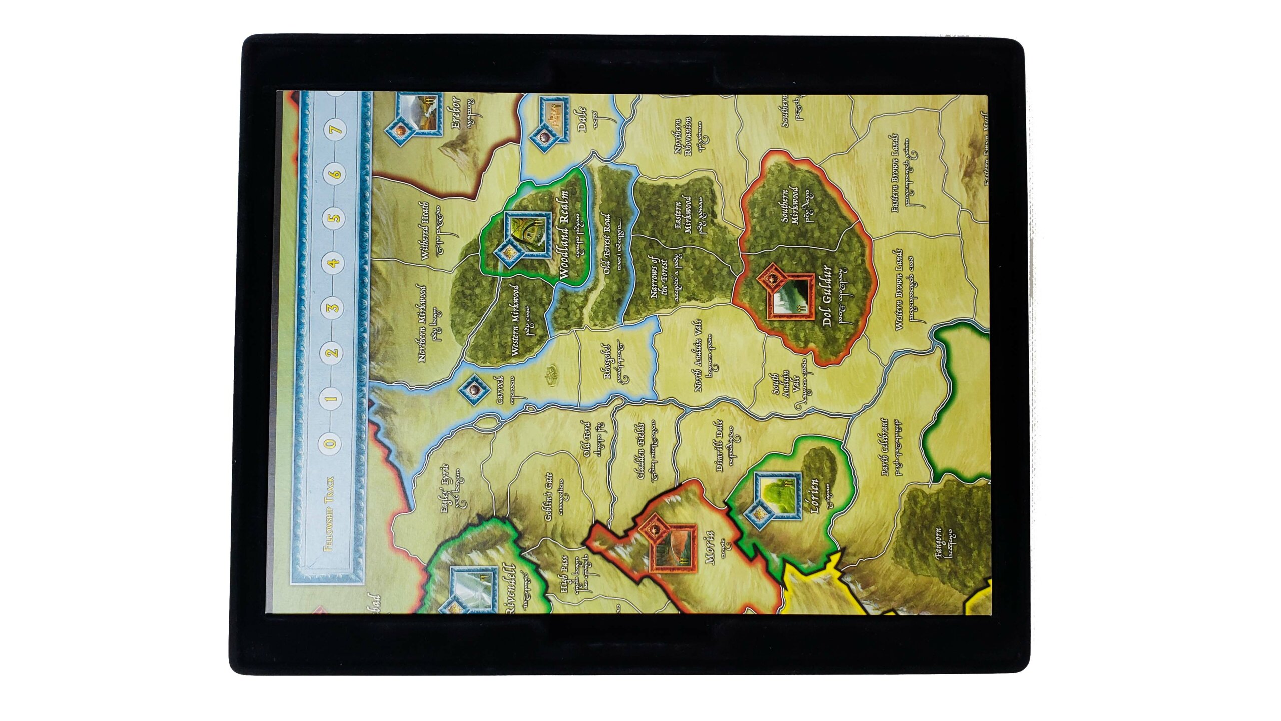 Markers and tokens are used to keep track of settlement control, fellowship progress, companions, victory points, and more! The cardboard is thick and dense and the print quality is very high!